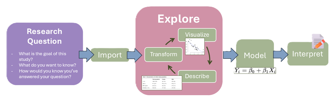 Now that we have a clearly defined our research question, we can begin the process of working with the data!