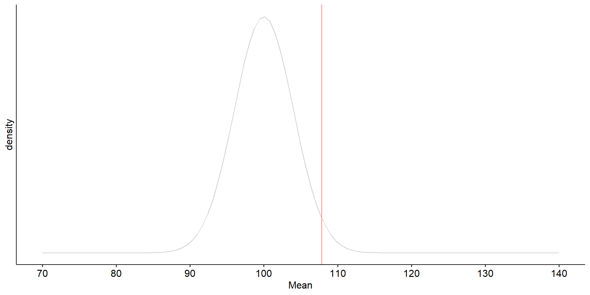 \[P(H_1|Data)\] Instead, we’re going to test our null hypothesis. Well, not really. We’re going to assume our null hypothesis is true, and test how likely we would be to get these data.