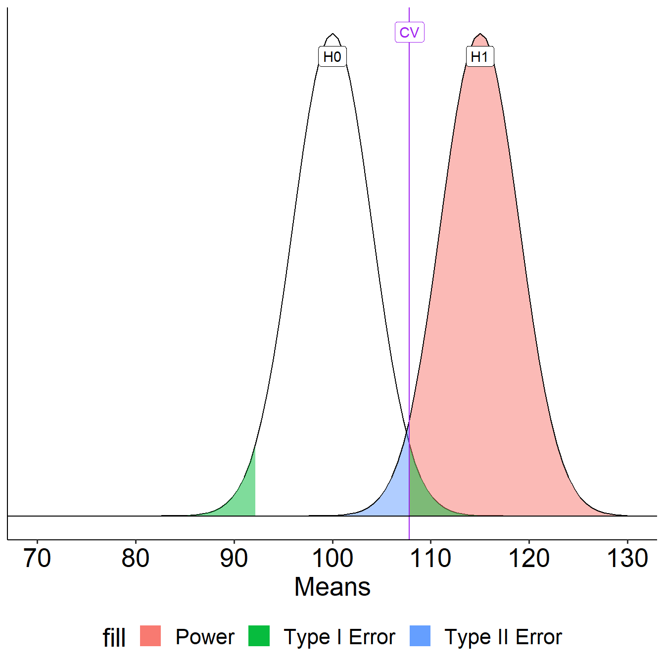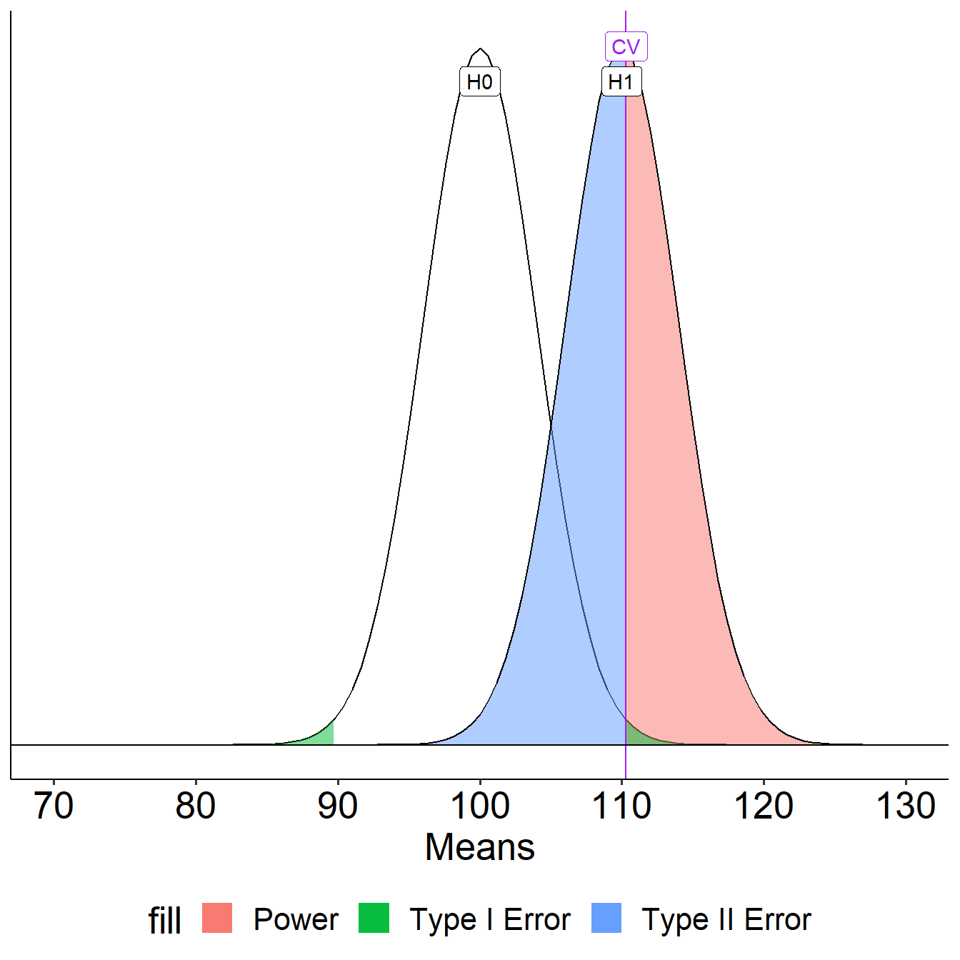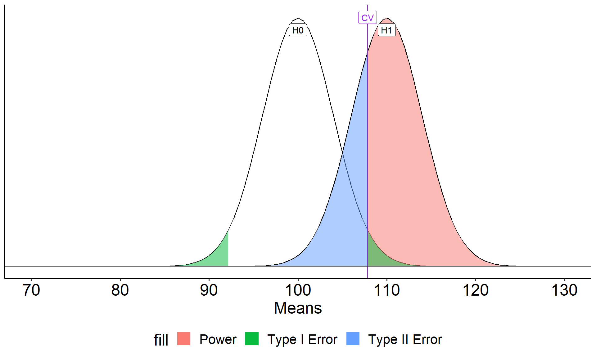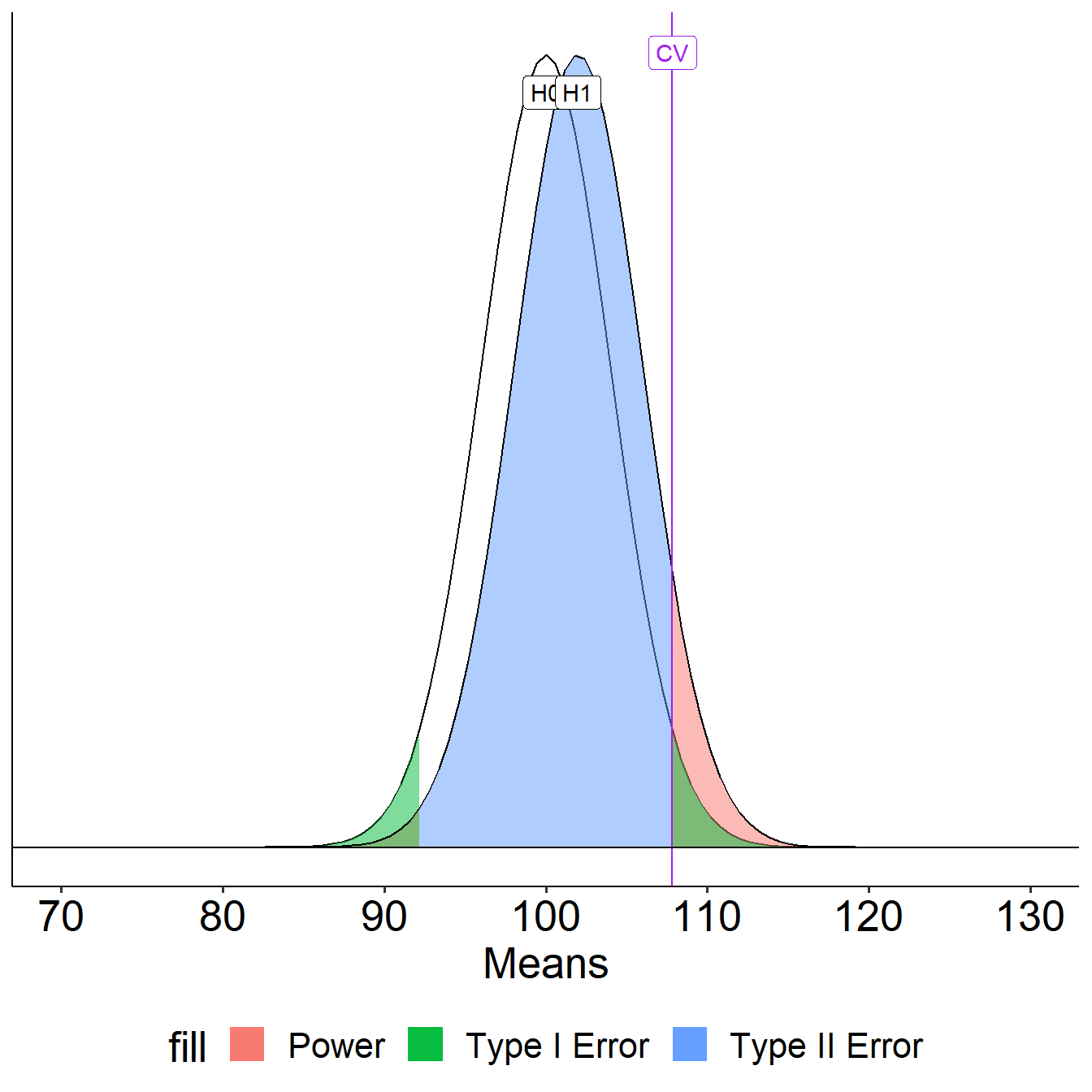 I strongly recommend playing around with different configurations of \(N\), \(\alpha\) and the difference in means ( \(d\) ) in this online demo.