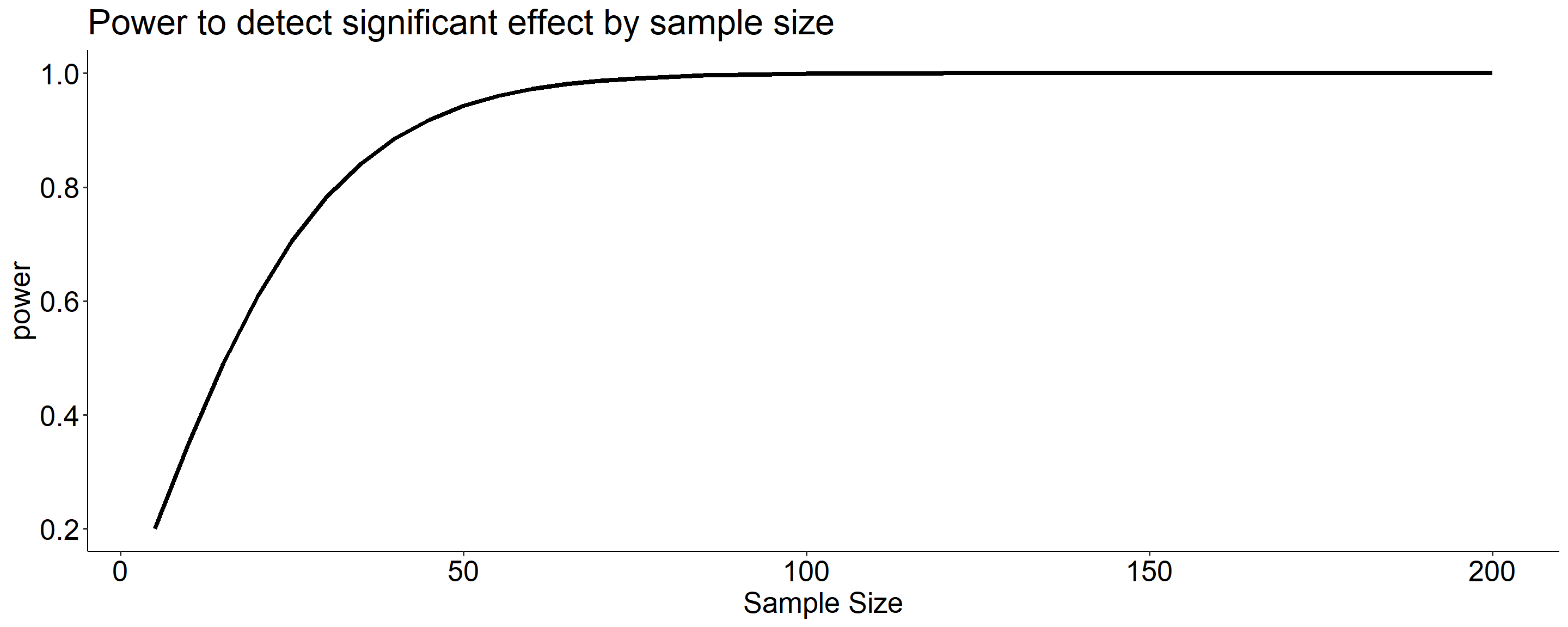 Then we can use the pwr library to calculate the power we can expect. The function looks like:
