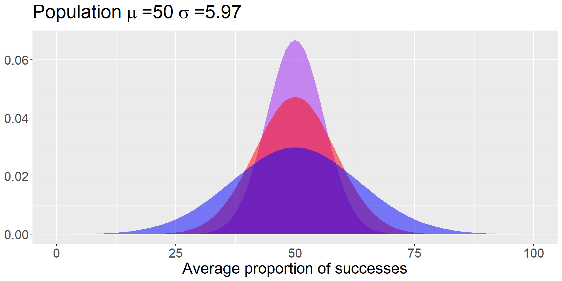 stat_function(fun = function(x) dnorm(x, mean = 50, sd = 18.88/sqrt(5)),