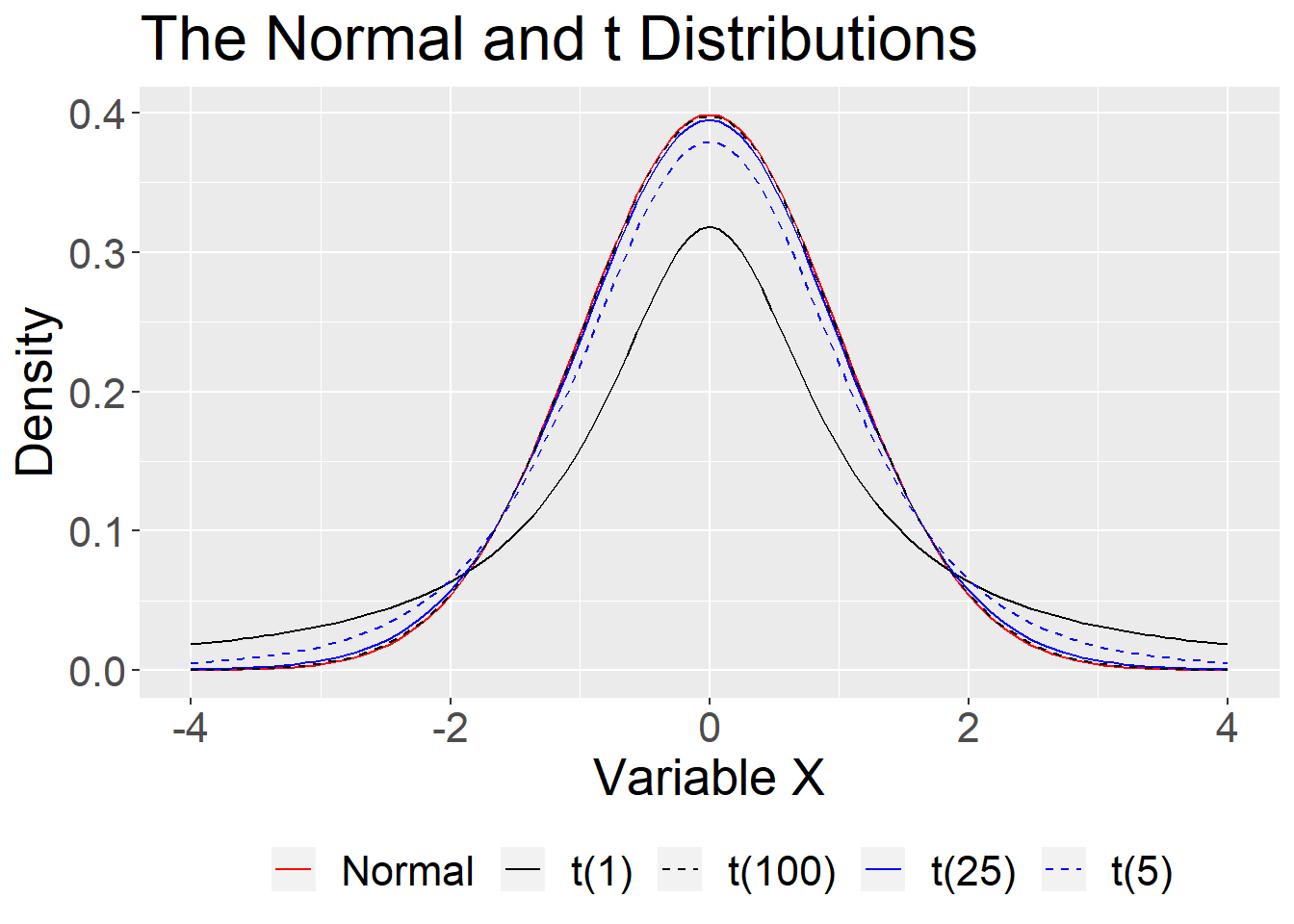 ggtitle("The Normal and t Distributions") +