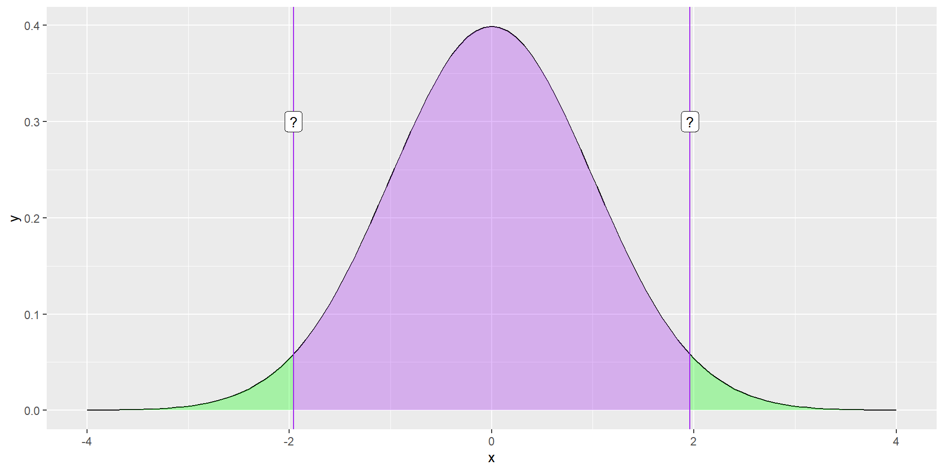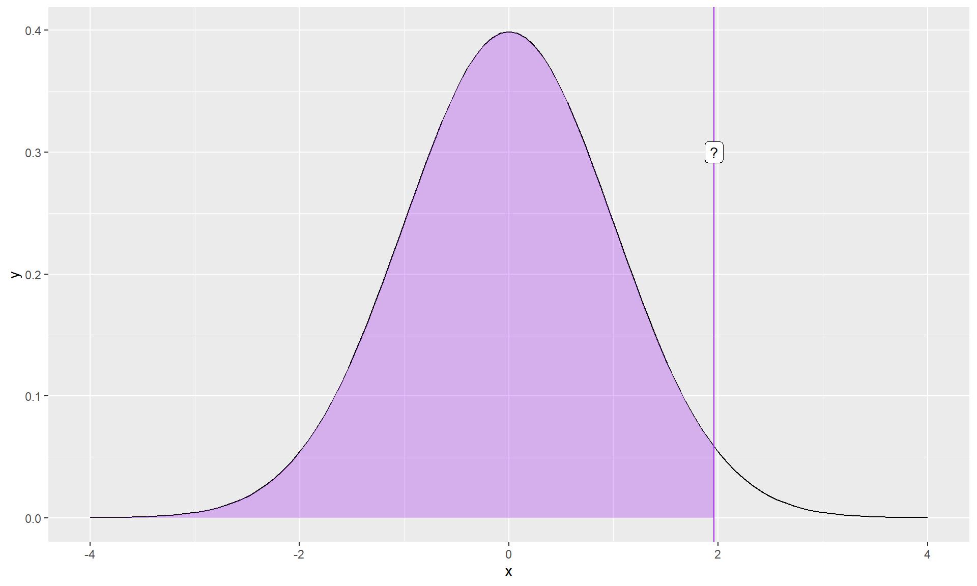 geom_label(aes(x = -1.96, y = .3, label = "?"))What if you didn’t know the value?