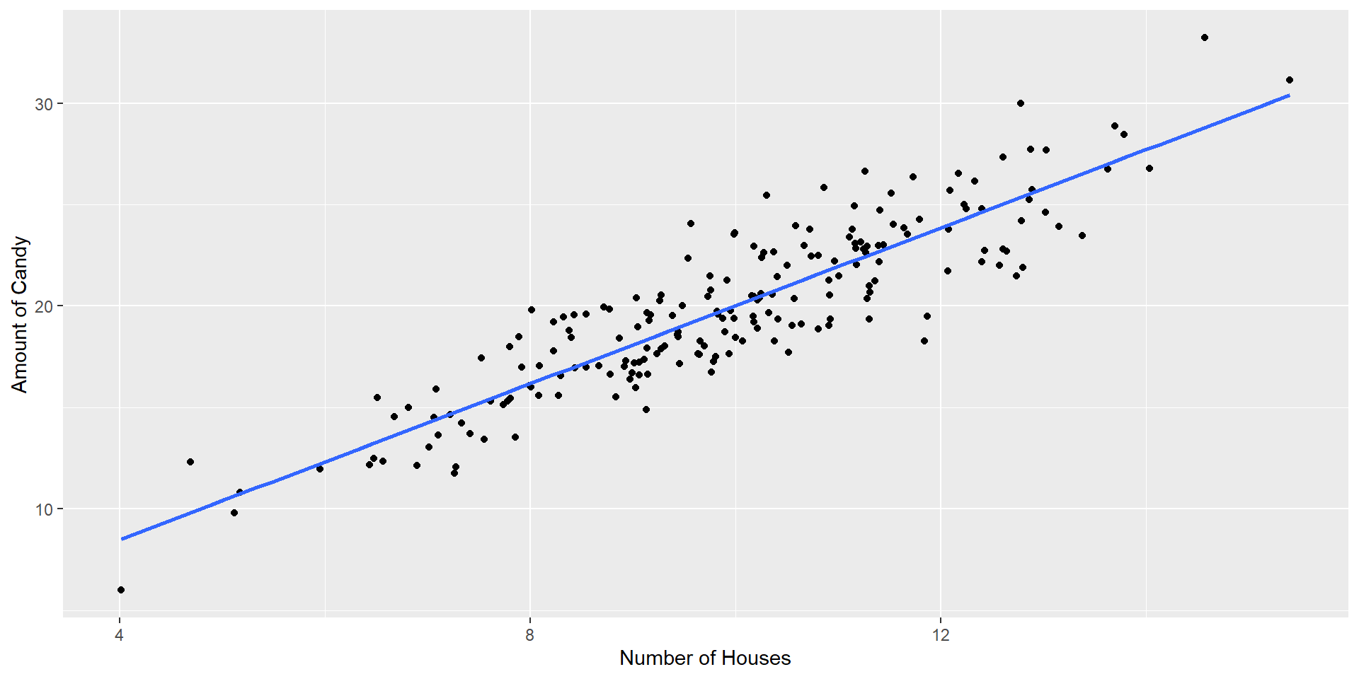 We have to interpret the covariance in terms of the units present (x = # of houses and y = amount of candy)