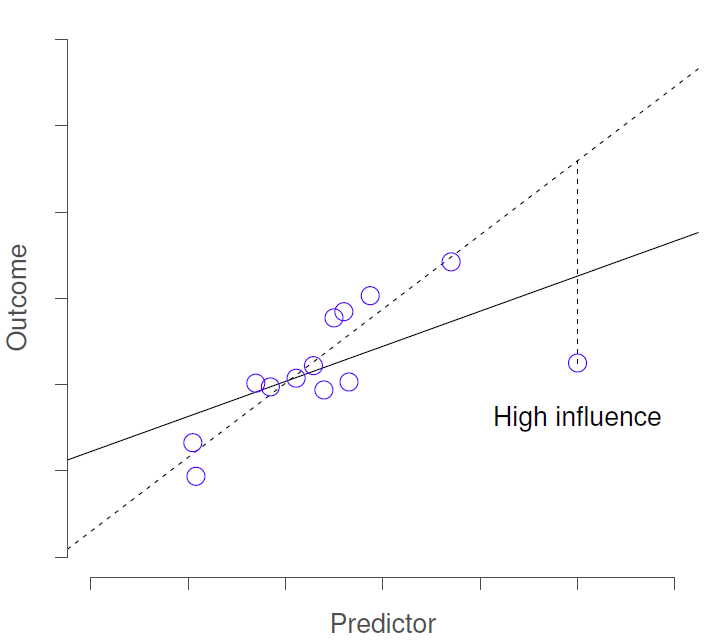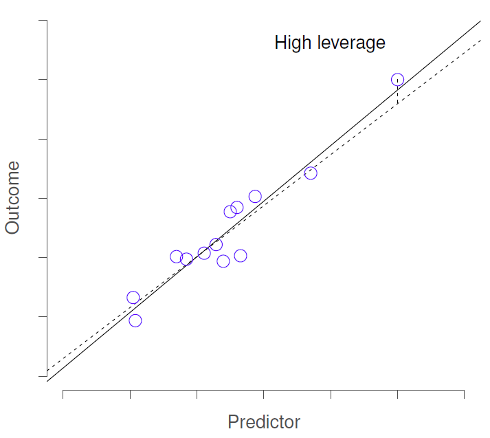 2) Leverage - variable is different in all ways from others (not just residuals)