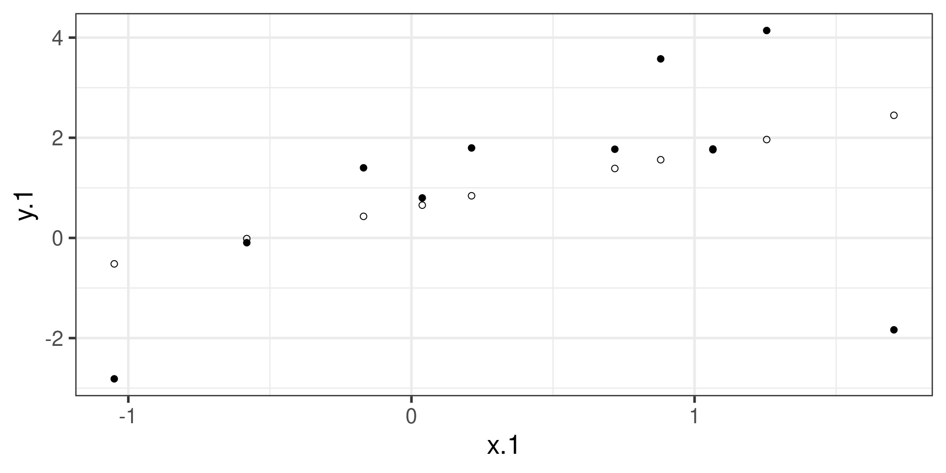theme_bw(base_size = 20)This phenomenon is known as regression to the mean. This describes the phenomenon in which an random variable produces an extreme score on a first measurement, but a lower score on a second measurement.